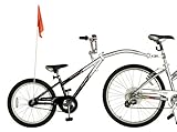Con's - Flag broke in 3 places on the first ride. The bike trails the adult bike about 3 inchs to the left. Also, the child sits with a lean to the right. (The bike was not perfectly lined up in the rigging when it was welded thus the tilt and dog tracking.)